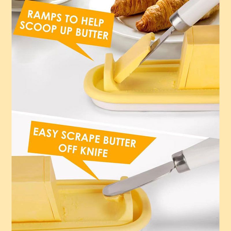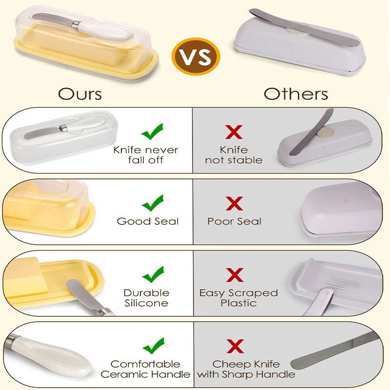 ✔️Easy-Grip Knife: The butter box comes with a specially designed knife that fits perfectly inside the box. The knife features an ergonomic handle for a comfortable grip, making it easy to spread butter effortlessly.